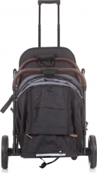 Für das Kind bieten verstellbare Rücken- und Fußstütze, ein verlängerbares Verdeck mit Sichtfenster und Sonnenblende sowie ein abnehmbarer, kunstlederbezogener Schutzbügel hohen Komfort. Für Sicherheit sorgen gepolsterte 5-Punkt-Gurte, die hintere Gliederbremse und ein Sicherheitsriemen an der Schiebestange. Im Lieferumfang enthalten sind Fußsack und Moskitonetz; der praktische Korb bietet viel Platz für alles Notwendige.