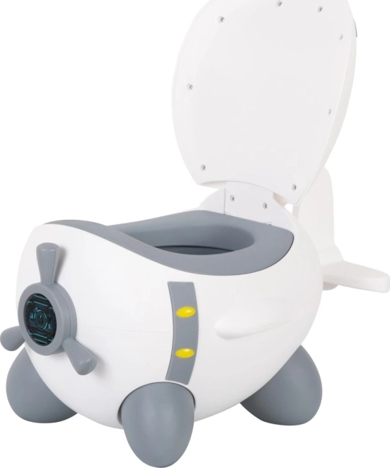 Niedliches Töpfchen in Flugzeugform der Marke FREEON erleichtert und beschleunigt den Übergang von Windeln zu Unterwäsche.