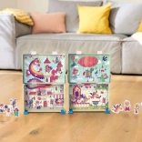 Zum Lieferumfang gehören außerdem Befestigungsklammern und Spielfiguren, mit denen Kinder die Szene beleben können. Gepuzzelt wird direkt in der Box, die als Hintergrund für das Theater dient – praktisch, unterhaltsam und ideal für unterwegs.