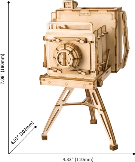 Erleben Sie den Zauber der Geschichte mit unserem Holz 3D Puzzle einer historischen Kamera. Perfekt als Dekoration und lehrreiches Spielzeug, das Kreativität und Koordination fördert.