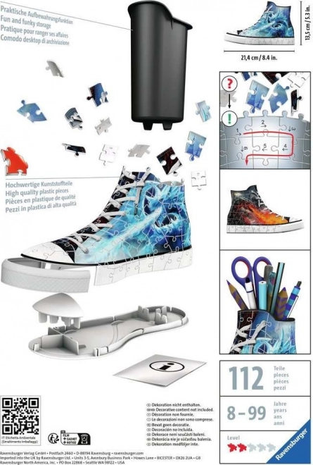 Dieses 3D-Puzzle bringt eine geniale Verbindung für Liebhaber von Sneakers und Puzzlen. Sie können einen Sneaker mit Weltraumdruck gestalten, der nicht nur Ihren Tisch schmückt, sondern auch als funktionaler Organizer für Stifte, Buntstifte oder Pinsel dient.