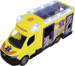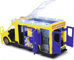 Dieser Mercedes-Benz Sprinter von Dickie Toys bietet ein echtes Rettungserlebnis mit Licht- und Soundfunktionen. Das Fahrzeug hat Türen, die sich öffnen lassen: Fahrer-, Beifahrer-, Seiten- und Hecktüren sowie ein durchsichtiges Dach, das Zugang zum detaillierten Innenraum ermöglicht.