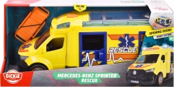 Im Lieferumfang sind Trage, Erste-Hilfe-Kasten und Rucksack enthalten, die es Kindern ermöglichen, Rettung zu spielen. Das Fahrzeug ist 34,5 cm lang und offiziell von Mercedes-Benz lizenziert.