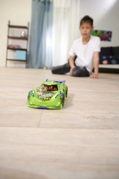 Dieses Auto ist mit einem starken Reibungsantrieb ausgestattet, der schnelles und dynamisches Rennen ermöglicht.