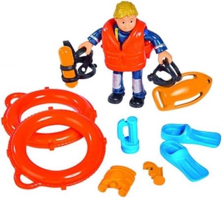 Das Spielzeug enthält eine umfangreiche Ausstattung, einschließlich der beweglichen Figur von Penny im Rettungsanzug. Die Figur wird mit Tauchflossen, abnehmbarer Schwimmweste und Helm geliefert. Produkte von Feuerwehrmann Sam von der Firma Simba sind sicher und für Kinder ab 3 Jahren geeignet.