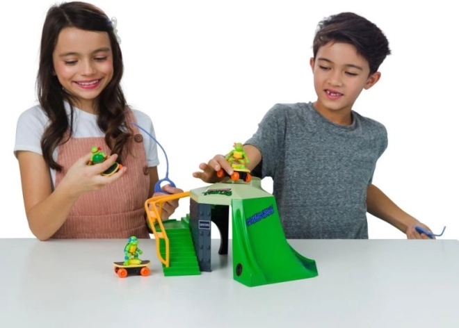 Ninja-Schildkröten Skatepark ist der perfekte Ort, um beeindruckende Skate-Tricks mit Spielfiguren nachzuspielen. Spielen Sie und entdecken Sie, was der Park alles zu bieten hat.