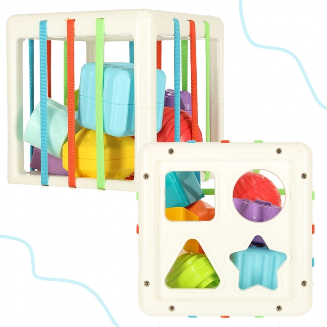 Dieser elastische Würfel ist so konzipiert, dass er eine Vielzahl von kindlichen Fähigkeiten entwickelt. Neben dem traditionellen Einlegen und Herausziehen von geformten Blöcken aus und in den Würfel bieten wir ein innovatives Design mit Gummibändern, das ein neues Element von Schwierigkeiten und Spaß hinzufügt.