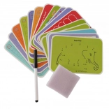 Dank des speziellen Stifts, der sich mit dem beiliegenden Schwamm leicht abwischen lässt, sind die Karten wiederverwendbar. So kann das Lernen stressfrei, mit Freude am Wiederholen und an Fortschritten stattfinden.