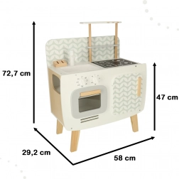 Das Design der Küche ist einfach und sanft pastellfarben, wodurch sie in jedem Kinderzimmer als zentraler Spielpunkt und ästhetische Ergänzung passt.<​/p><​/div>