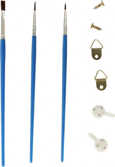 - Komplettes Set: Enthält eine Leinwand mit Rahmen, drei Pinsel in verschiedenen Größen, Farben, einen Aufhängehaken mit Schrauben und eine Vorschau des Bildes.