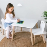 Klare weiße Flächen mit natürlichen Holzbeinen harmonieren mit den meisten Interieurs und schaffen eine gemütliche Kinderecke zum Spielen und Basteln.