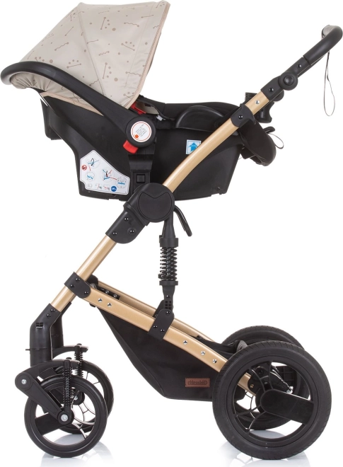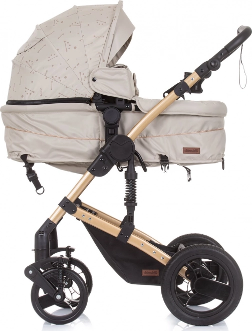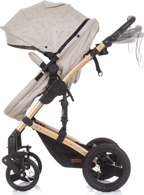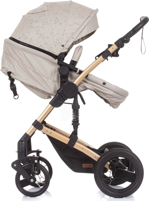 Der Chipolino Camea 2-in-1 ist ein praktischer Kinderwagen, der sich leicht von der Sportvariante zur Liegewanne umstellen lässt. Dank des stabilen Rahmens mit integrierter Federung und großen Rädern meistert er Stadt und anspruchsvolleres Gelände. Die drehbare Sitzeinheit ermöglicht es, das Baby zur Bezugsperson oder in Fahrtrichtung zu fahren.