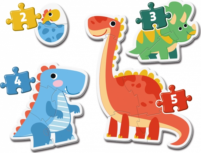 Kinder ab 2 Jahren können das Zusammensetzen der ersten Puzzle mit Dinosaurier-Thema genießen. Jedes Puzzle enthält eine unterschiedliche Anzahl von Teilen - 2, 3, 4 und 5, was eine schrittweise Verbesserung und den Erwerb neuer Fähigkeiten ermöglicht.