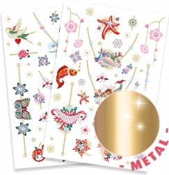 Verwandle deinen Stil im Handumdrehen mit den zarten und modischen Motiven „Schmuck Fiona“. Die temporären Tattoos von DJECO lassen sich leicht auftragen und verleihen deinem Look eine verspielte und elegante Note. Ideal für Partys, Geburtstage und den Alltag.