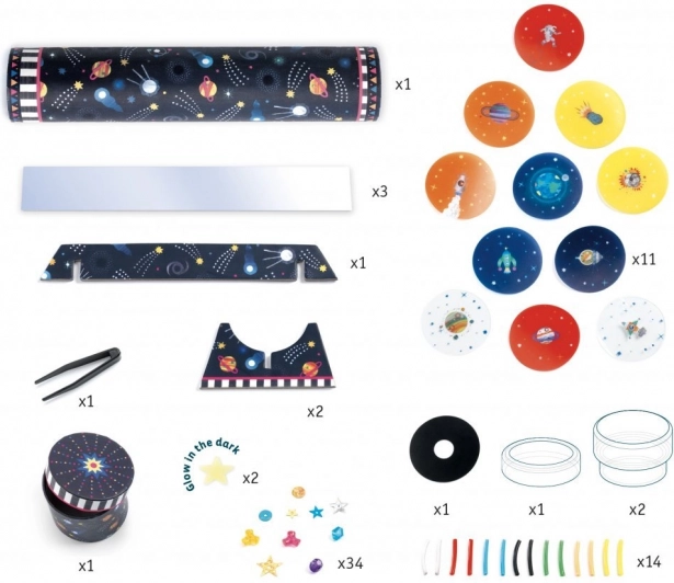 Kreativ-Set, mit dem du dein eigenes Kaleidoskop gestalten kannst. Der Kaleidoskop-Spiegel erzeugt mithilfe eines Systems aus Spiegeln und bunten Teilchen einzigartige Muster, wenn man in Richtung einer Lichtquelle blickt. Baue das Kaleidoskop mithilfe der bebilderten Anleitung zusammen und lass dich von den magischen Mustern verzaubern. Die Länge des zusammengesetzten Kaleidoskops beträgt ca. 20,5 cm. Geeignet für Kinder ab 7 Jahren.