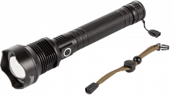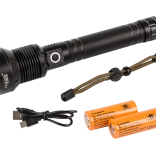 Mit der stufenlosen Zoom-Funktion lässt sich die Breite und Reichweite des Lichtkegels einfach anpassen, bis zu 1000 m, was ihre Flexibilität im Einsatz erhöht. Sie wird von modernen, wiederaufladbaren Batterien für verlängerte Betriebszeiten betrieben.