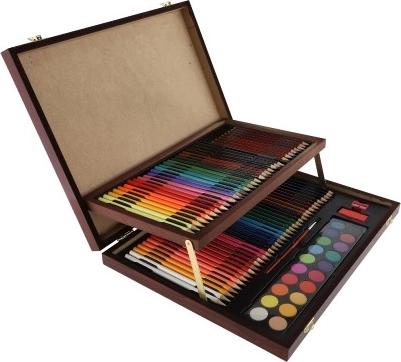 Kreatives Kunstset ist die perfekte Lösung für alle, die gerne gestalten. Dank des praktischen Holzkoffers sind alle Hilfsmittel übersichtlich geordnet und stets einsatzbereit.