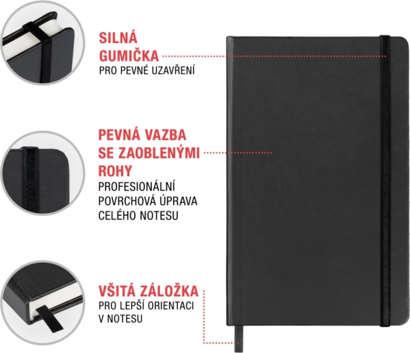 Elastisches Gummiband und Lesebändchen halten Ihre Einträge übersichtlich und schnell griffbereit.