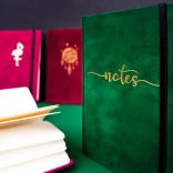 Luxuriöse Samtoberfläche mit elegantem metallischem Flamingo-Effekt verleiht Ihren Notizen Stil und schützt das Heft beim täglichen Tragen.