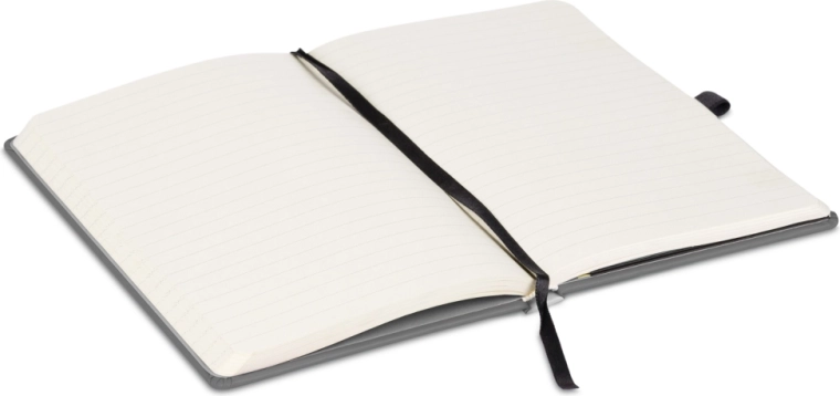 Elastisches Gummiband, Stiftschlaufe, Lesebändchen und Rückentasche halten alles griffbereit und sicher verstaut.
