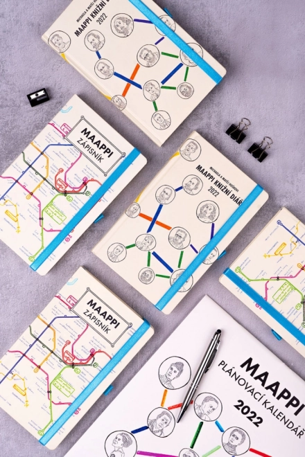 Maappi ist ein wohltätiges Projekt, dessen Hauptgesicht der siebzehnjährige Matěj Hošek ist, der seit seiner Kindheit mit einer schweren Form des Asperger-Syndroms lebt. Seine Eltern waren lange ratlos, bis sie ihm eines Tages einen Plan des Prager Nahverkehrs in die Hand gaben. Seitdem zeichnet Matěj seine einzigartigen U-Bahn-Netzpläne. Die besten Werke des jungen Designers finden Sie auf den Seiten dieses Notizbuchs, dessen Kauf Projekte unterstützt, die das Leben von Menschen mit Handicap verbessern.