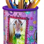 Entdecken Sie ein unterhaltsames 3D-Puzzle, das sich nach dem Zusammenbau in einen praktischen Halter für Stifte, Pinsel oder Kosmetik verwandelt. Speziell gebogene, hochwertige Kunststoffteile von RAVENSBURGER rasten passgenau ein und sorgen für eine feste Konstruktion ganz ohne Klebstoff. Das Pferdemotiv begeistert alle Tierfreunde und verleiht dem Schreibtisch einen individuellen Stil.