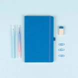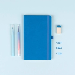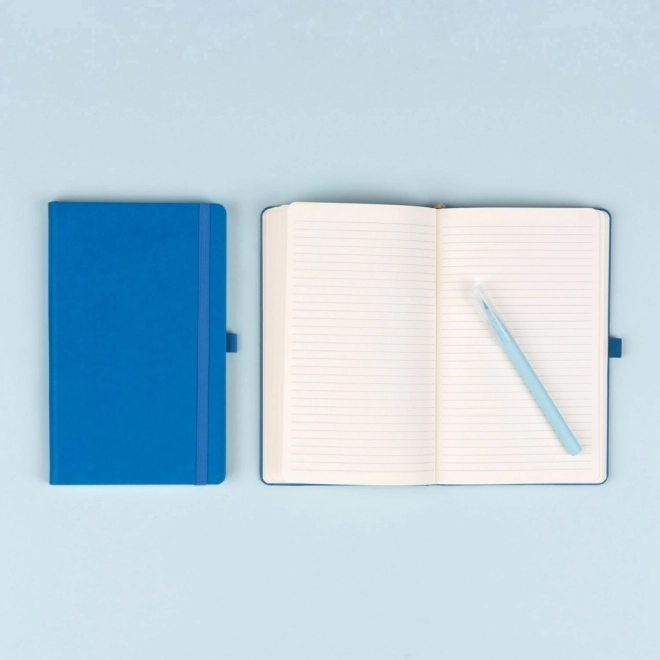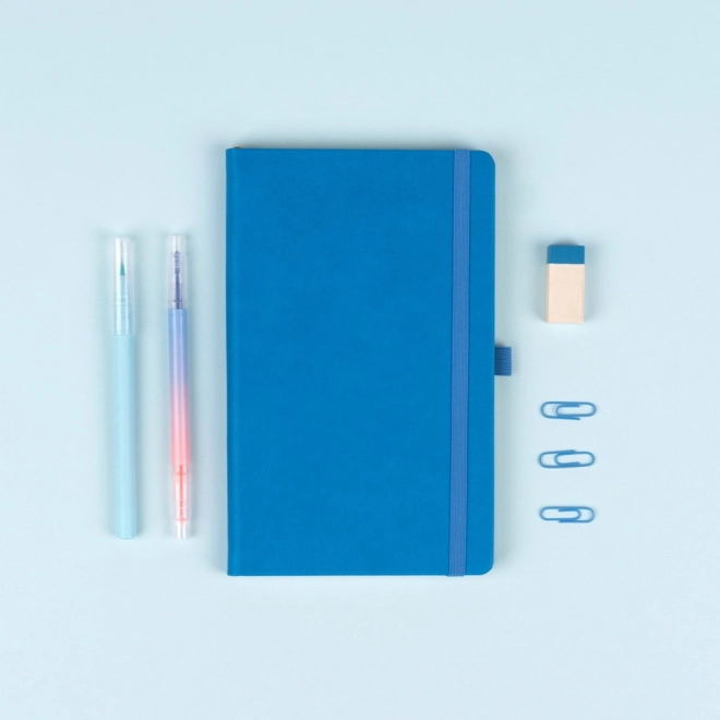 Praktisches und leichtes blaues Notizbuch mit gröberer Oberflächentextur – ideal für Notizen, Planung und tägliche Einträge. Dank der festen Buchbindung und dem elastischen Gummiband bleibt der Inhalt stets geschützt, während die Stiftschlaufe und das Textillesezeichen den Nutzungskomfort erhöhen.