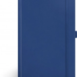 Praktisches und leichtes punktiertes Notizbuch in klassischem Dunkelblau mit einer gröberen Oberflächenstruktur, auf der Sie Ihr Firmenlogo prägen lassen können. Das Notizbuch hat eine feste Buchbindung, abgerundete Ecken, eine Stiftschlaufe, ein elastisches Gummiband und ein Textil-Lesezeichen. Die Punkte haben 5 mm Abstand und befinden sich auf hochwertigem gelblichem Papier.