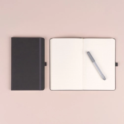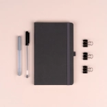 Das elastische Gummiband hält das Notizbuch sicher geschlossen, das Textil-Lesezeichen markiert die Seite und die Schlaufe fixiert den Stift genau dort, wo Sie ihn brauchen.