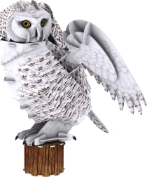 Das 3D Modell der Schneeeule mit detailliert gestalteten Federn und lebendigen Augen überzeugt durch sein realistisches Aussehen.
