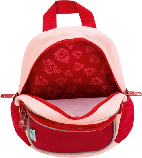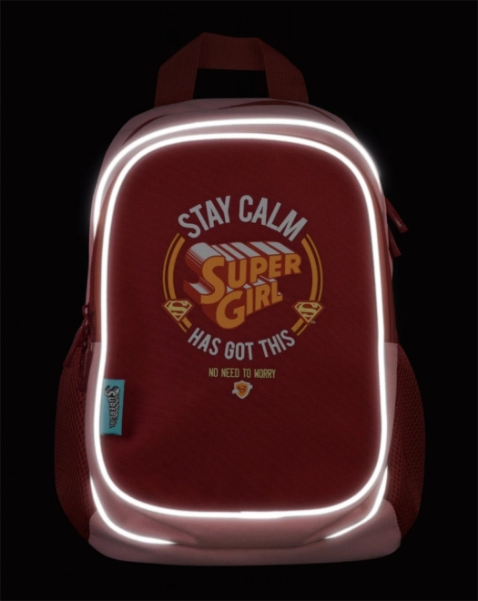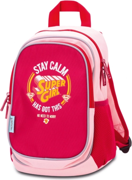 Das SUPER GIRL-Motiv macht Kindern Spaß, während die seitlichen Netztaschen Flasche oder Kleinigkeiten stets griffbereit halten. Die Fronttasche mit Reißverschluss bietet schnellen Zugriff.