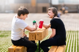 Die Flasche besteht aus recycelbaren Kunststoffen, die die strengen europäischen Normen 2011/10 für Materialien mit Lebensmittelkontakt erfüllen. Dank Schraubverschluss und ergonomischer Form liegt sie gut in kleinen Händen und nichts läuft aus.