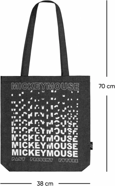 Das beliebte Motiv der Maus Mickey haben wir auf eine strapazierfähige Stofftasche im Jeans-Look übertragen. Sie ergänzt lässige Outfits perfekt, fühlt sich angenehm an und lässt sich dank des kompakten Designs leicht in der Handtasche verstauen. Ideal für schnelle Einkäufe, Stadtbummel oder als stylisches Accessoire.