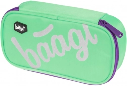 Stylisches Schulmäppchen in Mintfarbe mit Skate-Motiv von der Marke Baagl. Dieses Mäppchen wird mit Fokus auf Stärke und Praktikabilität hergestellt und bietet eine doppelte Klappe zum Aufklappen für einfachen Zugang zu Ihren Schreibutensilien.
