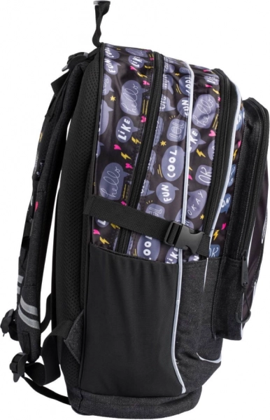 Die geformte Rückenpartie sowie vollständig verstellbare Schulter-, Brust- und seitliche Kompressionsgurte sorgen für Stabilität und Komfort – selbst wenn der Rucksack mit Schulbüchern vollgepackt ist.