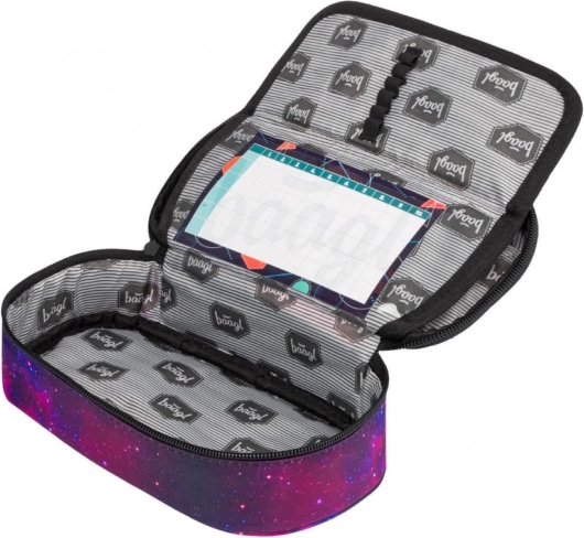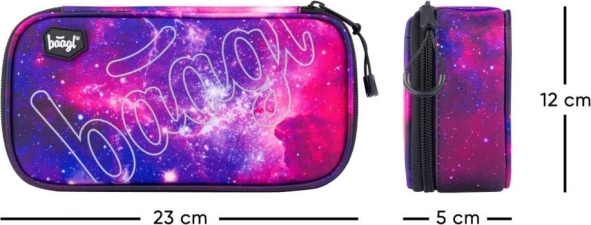 Entdecken Sie das einzigartige Schulmäppchen Baagl mit Galaxiemotiv. Dieses Mäppchen ist für alle Schulutensilien konzipiert, die Sie immer griffbereit haben möchten: