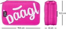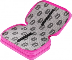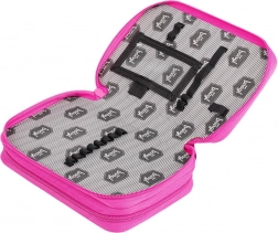 Zweistöckiger Schulmäppchen in rosa Ausführung mit Logo und verstärktem Rücken für einfache Handhabung. Hochwertige Gummibänder ermöglichen die Aufbewahrung auch von dicken dreieckigen Buntstiften. Außerdem ist es mit einer kleinen Tasche für Münzen oder Kleinigkeiten ausgestattet.