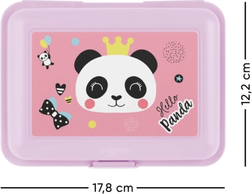 Die rosa Panda-Lunchbox ist eine ausgezeichnete Wahl für den täglichen Gebrauch. Hergestellt aus hochwertigem Kunststoff, garantiert sie Langlebigkeit und einfache Pflege. Der Deckel ist mit einem niedlichen Pandadesign mit Krone und dem Schriftzug Hello Panda versehen, was jeden Tierliebhaber erfreuen wird.