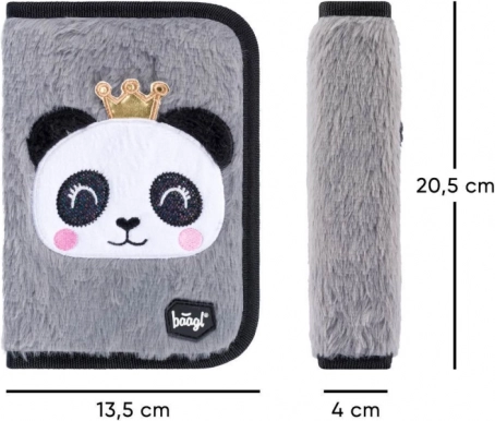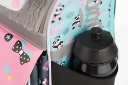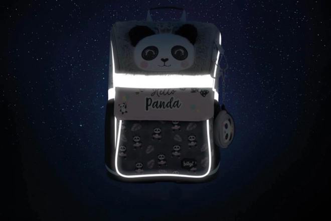 Zum Set gehören außerdem ein klassisches einlagiges Federmäppchen mit zwei Klappen und hochwertigem Reißverschluss sowie ein praktischer Beutel aus festem, abwischbarem Material mit vorderer Reißverschlusstasche. Das gesamte Set ist mit dem beliebten Panda-Motiv verziert und mit reflektierenden Elementen für bessere Sichtbarkeit ausgestattet.
