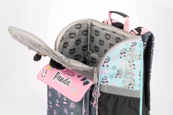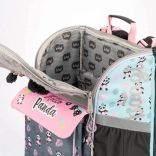 Schultasche, Federmäppchen und Beutel sind im verspielten Panda-Motiv aufeinander abgestimmt. Weiche Details und hochwertige Reißverschlüsse erfreuen Kinder, robuste Materialien überzeugen die Eltern.