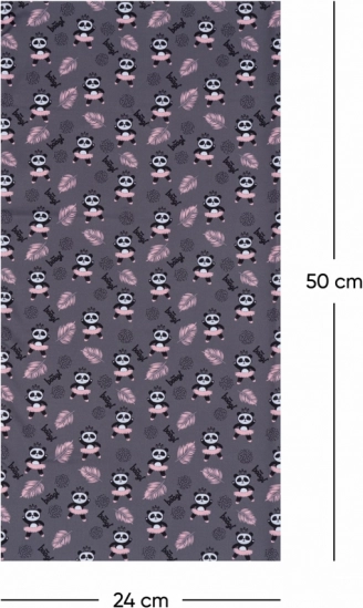 Universelle Größe für Erwachsene und ein attraktives Design mit Pandas und rosa Akzenten auf grauem Hintergrund runden jedes Outfit ab.