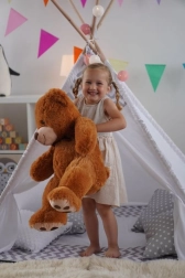 Groß genug zum Kuscheln und Spielen, dabei leicht und für Kinder einfach zu tragen.