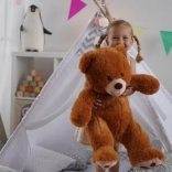 Dieser dunkelbraune Plüsch-Teddybär mit zarter Oberfläche und liebevollen Details wird zum treuen Begleiter für jeden Tag. Dank der flauschigen Füllung und des angenehm weichen Stoffes eignet er sich ideal zum beruhigenden Kuscheln und zum Schlafen.