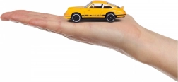 In der Edition finden Sie einen Mix aus sechs legendären Fahrzeugen: Porsche 911 Carrera S (grün), Porsche 917 (blau), Porsche 911 Carrera RS 2.7 (schwarz und gelb), Porsche 911 GT3 Cup (992) (türkis) und Porsche Panamera (weiß). Der Packungsinhalt ist zufällig – ein konkretes Modell kann nicht ausgewählt werden. Jedes Auto ist etwa 7,5 cm lang und wird durch eine Sammlerkarte mit Informationen wie Geschwindigkeit und Zylinderzahl ergänzt.