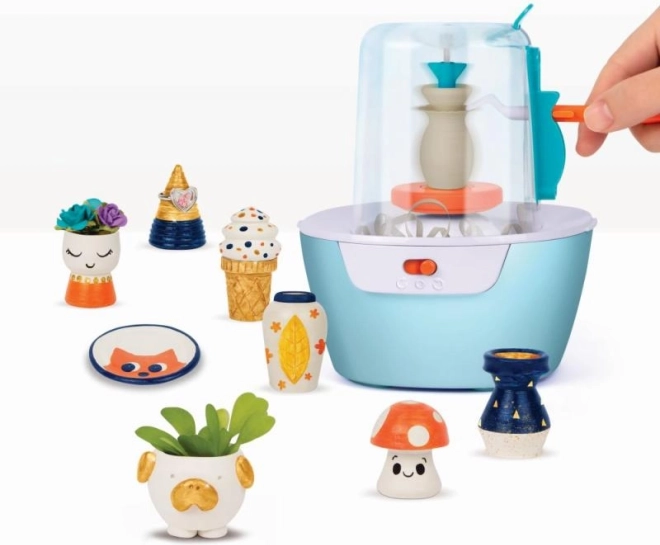Interaktive Elemente ermöglichen es Kindern, den Ton zu drehen und begeistert zuzusehen, wie ihre Kreationen Gestalt annehmen. Das Spielzeug ist ideal für kreatives Spielen.