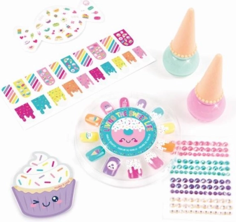 Das Candy-Nagelset ist die perfekte Wahl für junge Kreative, die ihren persönlichen Stil verfeinern möchten. Es enthält zwei Nagellacke in Eisform, die wasserlöslich sind und sich leicht mit warmem Wasser und Seife entfernen lassen. Dieses Set wird durch viele bunte Aufkleber und Dekorationen ergänzt, die es ermöglichen, ein originelles und verspieltes Aussehen der Nägel zu kreieren.