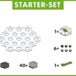 Das Gravitrax Starter-Set enthält mehr als 100 Teile und 18 verschiedene Konstruktionskomponenten, mit denen Sie sowohl Rennbahnen als auch komplizierte Strecken mit vielen Kurven und Hindernissen für eine oder mehrere Kugeln gestalten können.