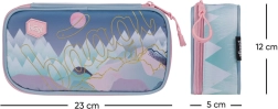 Das Etui Baagl Skate Moon besticht durch ein modernes Design mit Berg- und Planetenmotiv in einer Blau-Rosé-Kombination. Dank des robusten Reißverschlusses und des widerstandsfähigen Materials schützt es Ihre Schreibutensilien und kleinen Schulhilfen zuverlässig.