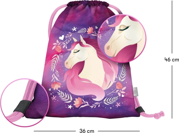 Genießen Sie das originelle Design des Beutels mit Pferdemotiv, das alle Liebhaber dieser edlen Tiere erfreuen wird. Ein toller Begleiter für Kinder und Erwachsene, die ihre Kleinigkeiten immer griffbereit haben möchten.