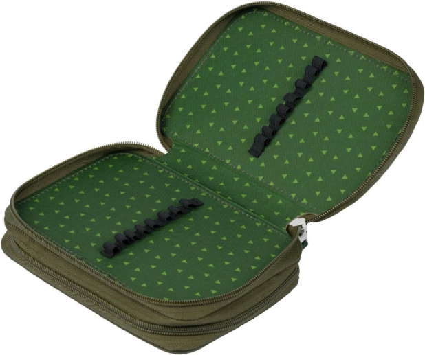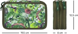 Dieses Mäppchen bietet ein einzigartiges Dinosauriermotiv mit auffälligen grünen und braunen Blattmustern.